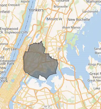 The 15th district is located entirely within the Bronx, namely the southern portion of the West Bronx as well as the South Bronx. Latinos make up the majority of the district's population, followed by Black people. Whites, Asians and other racial groups comprise a small minority. Yankee Stadium and the Bronx Zoo are both located within the district.