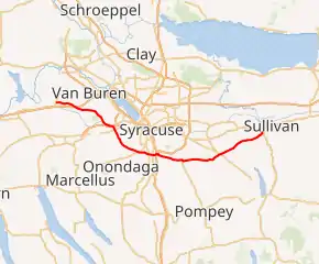 ![]() Map of the Syracuse area with NY 173 highlighted in red | ||||