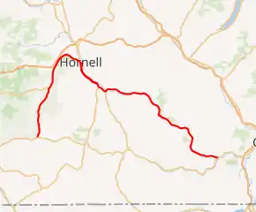 When state highways were first numbered in New York in 1924, NY 17 originally followed a different, more northerly alignment between Andover and Jasper. Instead of continuing east to Jasper on a direct line from Andover, NY 17 curved north to serve Hornell by way of what is now NY 21 and NY 36.[12][13] NY 17 was rerouted in the 1930 renumbering to follow a previously unnumbered direct route between Andover and Jasper while the old routing between Andover and Hornell became NY 17F.[2] NY 17F also continued south along NY 21 (which replaced NY 17 from Hornell to Jasper) to Canisteo, then east over an unnumbered roadway to NY 17 in Addison (via Cameron and Rathbone).[14]