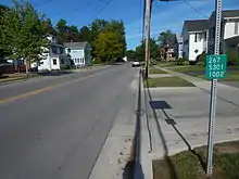 NY 267 was assigned c. 1935 to a routing extending from NY 93 in Akron to the Erie–Genesee county line by way of John Street and Bloomingdale Road. Farther east, the portion of Bloomingdale Road between the Tonawanda Indian Reservation and NY 77 was designated as NY 77A around the same time.[2][3] NY 77A and the remainder of Bloomingdale Road within Genesee County became an extension of NY 267 in the late 1930s.[7][8] On April 1, 1980, ownership and maintenance of the portion of NY 267 within Erie County—by this point the lone state-maintained portion of the route—was transferred from the state of New York to Erie County as part of a highway maintenance swap between the two levels of government.[9] The NY 267 designation was removed from the entirety of its routing just over four months later on August 14, 1980.[4] The Erie County segment of the route is now CR 573 while the Genesee County section is locally maintained.[5]