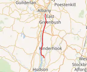 New York State Route 9J (NY 9J) is a north–south state highway in the Hudson Valley region of New York in the United States. It begins at an intersection with US 9 in the Columbia County town of Stockport and extends for 22.35 miles (35.97 km) to an interchange with US 9 and US 20 in the Rensselaer County city of Rensselaer. The route parallels the Hudson River for its entire length, and several parts of the highway run directly alongside the river. NY 9J was assigned to its current alignment as part of the 1930 renumbering of state highways in New York.