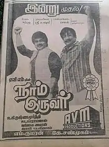 Naam Iruvar (transl. We Two) is a 1985 Indian Tamil-language film, directed by R. Krishnamoorthy and produced by A. V. M. Kumaran. The film stars Sivaji Ganesan, Prabhu, Urvashi and Charle. The film had musical score by Gangai Amaran.[1][2][3][4] The film was a remake of Kannada film Ramapurada Ravana,[5] and was Ganesan's 250th film as an actor.[6]