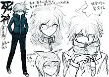 Nagito was created to be "an absolute rival" to Hajime Hinata, with Kazutaka Kodaka describing their relationship as similar to that of the Joker to Batman. Komaeda's characterization was aimed to give players a confusing view in regards to Nagito's true self, based on the morally dubious and contradictory actions he committed over the course of the game. His Japanese actress, Megumi Ogata found trouble when doing the voice for Nagito as she had no clear grasp on understanding him. Komaeda was introduced with the same Lucky Talent as Makoto Naegi. However, the staff considered them opposites based on their ideals of "hope".[4] In regards to his design, Hajime was the earliest designed the character which generated a major contrast between his white clothing to Nagito's dark clothing.[5] Nagito was written to create a major impact into the game despite not being the lead or antagonist, symbolizing the prominent themes of hope and despair through his actions.[6]