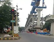 Nagpur Metro is a rapid transit system for the city of Nagpur, Maharashtra, India.[3][4] It is estimated to cost ₹8,260 crore (equivalent to ₹110 billion or US$1.5 billion in 2020).[5] In February 2014, the Government of Maharashtra gave approval for the Metro Project,[6] while the Government of India's Ministry of Urban Development had given "In Principle" approval for the Project.[7] On 20 August 2014, Union Cabinet gave approval for the development of project, and Prime Minister Narendra Modi laid foundation stone on 21 August on his visit to the city.[5] Construction on the project began on 31 May 2015,[8] with trial run beginning on 30 September 2017.