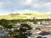 The Naguanagua (Spanish pronunciation: [naɣwaˈnaɣwa]) municipality is one of the 14 municipalities (municipios) that makes up the Venezuelan state of Carabobo and, according to the 2011 census by the National Institute of Statistics of Venezuela, the municipality has a population of 157,437.[1] The town of Naguanagua is the shire town of the Naguanagua Municipality.[2] It forms part of the greater Valencia Metropolitan Area in Venezuela. It is in the valley of the Cabriales River at the base of Cerro El Café and the El Trigal Mountain. Valencia and Naguanagua form a continuous urban area. The highway that runs from the centre of Valencia towards Puerto Cabello passes through this community; Bolivar Avenue in Valencia becomes University Avenue in Naguanagua on the northern side of a traffic roundabout, or redoma.