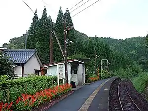 Nakafukura Station (中福良駅, Nakafukura-eki) is a railway station on the Hisatsu Line in Kirishima, Kagoshima, Japan, operated by Kyushu Railway Company (JR Kyushu). The station opened in 1958.