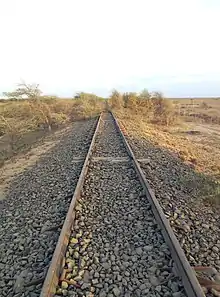Naliya is on National Highway 41. The town had a railway line laid in 1980 to get connected town with Bhuj. The line was abandoned later since Gandhidham-Bhuj section was converted to broad-gauge and this 101.52 kilometres (63.08 mi) line became isolated. This line is no longer used for public, military or freight purpose. Recently, gauge conversion to broad gauge has been approved by the Government of India. Work of gauge conversion to broad gauge is completed up till Desalpur, 56.25 kilometres (34.95 mi) from Bhuj. The work in remaining 39.15 kilometres (24.33 mi) is in Progress. The Naliya Cantonment will be the rail station for Naliya Town once gauge conversion is completed. Due to security reason the 6.12 kilometres (3.80 mi) railway line stretch between Naliya Cantonment & Naliya Town will not be made since Naliya is situated just 25.98 kilometres (16.14 mi) from India-Pakistan border of Sir Creek Marshlands.