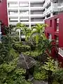 The administration & aesthetics block mainly houses the general office, staff room and dedicated rooms and studios for the Performing Arts CCAs. A sky garden, a classroom based on an "open classroom" concept on the 5th floor of the same block was opened by then Minister for Education, Tharman Shanmugaratnam on 25 April 2007. The sky garden was the culmination of a variety of proposals put forth by students after a challenge issued to them by then Principal Dr Foo Suan Fong to come up with ideas to transform the space into one which could be used not only for casual meetings, but also for lessons and CCAs.[20] The auditorium, named after the school's top donor, the Yeung Ching Foundation, is also located on the same level as the sky garden.