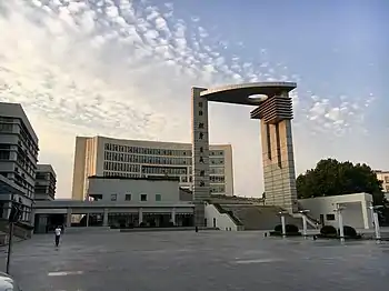 Nanjing University of Science and Technology can be traced back to 1952, as Department of Artillery Engineering of Institute of Military Engineering of the PLA (People's Liberation Army) in Harbin. Since its establishment, it aims on serving national strategies and promoting social progress. In 1962, the campus moved to Nanjing. The name of the university changed many times, and finally determined as current name in 1993. In September 1998, the name on the school badge was inscribed by Chinese President and General Secretary of the Communist Party Jiang Zemin.[4] In June 2008, Nanjing University of Science and Technology is subordinated to the Ministry of Industry and Information Technology.