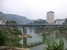 The Chinese portion of the Yunnan–Vietnam Railway was built partly along the Nanxi River valley from 1906 to 1910, linking the city of Kunming with the Vietnamese capital, Hanoi.[5] The mountainous terrain of the Nanxi River Valley posed special difficulties for the railway's construction; this, along with the endemic nature of malaria in the area, led to the deaths of at least 10,000 workers in the valley.[6][7][8] Today, the Nanxi River is known as a destination for white water rafting.