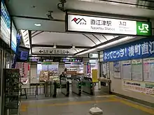 Naoetsu Station (直江津駅, Naoetsu-eki) is a railway station in the city of Jōetsu, Niigata, Japan, jointly operated by East Japan Railway Company (JR East) and the third-sector railway operator Echigo Tokimeki Railway.