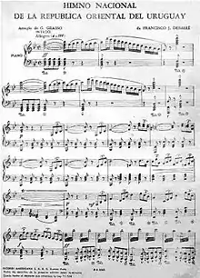 - Free sheet music of the National Anthem of Uruguay from Cantorion.org