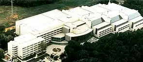 The National Archives building at College Park held its groundbreaking in 1989 and opened in 1994 on a parcel of campus donated by the University of Maryland,[1] mostly to alleviate space constraints at the aged National Archives Building in Washington, D.C.[2][3] By that time, the original facility had become incapable of holding further numbers of records transferred in from various branches of the government. Due to its more modern facilities, the Archives at College Park quickly assumed a role as the de facto headquarters of the National Archives, hosting several of the more important operational and administrative offices. Officially, the seat of the National Archives remains at the National Archives building in Washington, D.C.