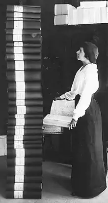 In 1912, Karl Staff presented a motion of women's suffrage, which was voted down by the Conservatives, while the Liberals and Social Democrats voted yes.[6] Staff encouraged LKPR to present a support list to Parliament to silence the argument that women did not ask to vote themselves, and in 1913, the LKPR could present a list of 360,000 names of women who supported women's suffrage.[7]