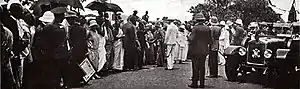 Another pan-African movement that arose during the same time as the NCBWA was the United Negro Improvement Association (UNIA), a pan-African movement led by Marcus Garvey that wanted to create "an independent black republic over the entire continent of Africa".[12] In its attempts to maintain its dominance among West African elites, the NCBWA publicly denounced and derided the formation of the UNIA as illegitimate and dangerous. Moreover, the NCBWA said that the viewpoint of the members of the UNIA was American and thus incompatible with the struggles and needs of the indigenous, African peoples. The main point of contention between the UNIA and the NCBWA was that the NCBWA did not want African nations to be independent from their colonial leaders but rather wanted to ensure that the West African elite were adequately represented in the colonial government. Similarly to the NCBWA, the UNIA established branches throughout West Africa in order to promulgate its message throughout the region and in the process gained the support of West African elites who would have otherwise joined the NCBWA.[12] Despite the political differences and competition between the UNIA and NCBWA, however, both of the organizations came together following the economic hardship brought about by World War I to help increase the economic prospects of Africans at home and abroad.