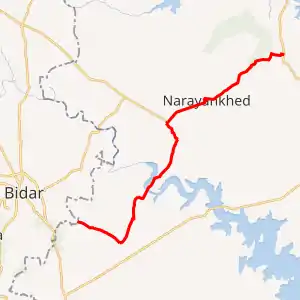 Nizampet, Moodguntal, Narayanakhed, Manoor, Bellapur, Pulkurthi, Pipri, Ibrahimpur, Nyalkal, Athnoor, Dappur and terminating at Telangana/Karnataka border.[1][2]