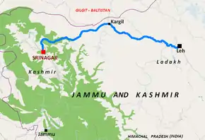 National Highway 1D (NH 1D), also known as Srinagar-Leh Highway, was a National Highway entirely within the union territory of Jammu and Kashmir and Ladakh in North India that connected Srinagar to Leh in Ladakh. It was one of the only two roads that connected Ladakh with the rest of India, the other being Leh-Manali Highway. The Srinagar-Leh Highway was declared as National Highway in 2006.[1][2]