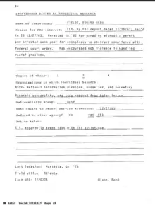 On December 27, 1963 Edward Fields was brought to the US Secret Service's attention as a possible threat against protected individuals. This was divulged as part of the JFK file release. The FBI considered that Fields was "one step removed from being insane."[9]