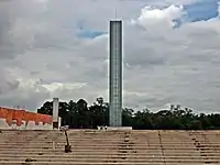 Swadhinata Stambha (Bengali: স্বাধীনতা স্তম্ভ) or Independence Monument is a national monument in Bangladesh to commemorate the historical events that took place in the Suhrawardy Udyan, previously known as Ramna Race Course ground regarding the Liberation War of Bangladesh.[30] Government of Bangladesh took the initiative to build the monument in 1996. The construction began in 1999. Kashef Mahboob Chowdhury and Marina Tabassum designed the project.