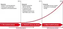Subsequently, the involved partners committed to establish cross-company and cross-sector working groups and to deliver a first interim report until the end of 2010.[12] The coordination panels of the NPE could build on experts of the existing working groups of the German Commission for Electrical, Electronic & Information Technologies of DIN and VDE (DKE) of the Association for Electrical, Electronic and Information Technologies (VDE). The VDE Congress "E-mobility" on 8 and 9 December 2010 in Leipzig was used for technical consultation, from which the first interim report for the Federal Government has been derived. It describes the state of development and the expectations of the representatives of industry and research.[13]