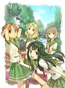![]() Cover of first BD volume featuring the main characters (from left to right): Natsumi Aizawa, Saki Mizukoshi, Yuka Hanaki and Rinko Tamaki | |