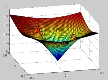 Probabilistic navigation function is an extension of the classical navigation function for static stochastic scenarios. The function is defined by permitted collision probability, which limits the risk during motion. The Minkowski sum used for in the classical definition is replaced with a convolution of the geometries and the Probability Density Functionss of locations. Denoting the target position by , the Probabilistic navigation function is defined as:[2] where is a predefined constant like in the classical navigation function, which ensures the Morse nature of the function. is the distance to the target position , and takes into account all obstacles, defined as where is based on the probability for a collision at location . The probability for a collision is limited by a predetermined value , meaning: and,
