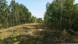 Polish authorities sectioned off woodland in the area of kilometer 65, as well as deploying police and other guards in order to prevent access to the numerous treasure hunters who had arrived armed with detection equipment.[16] In late September, the Polish military, acting at the request of the regional governor, began to clear the surface of trees and search for booby traps and mines.[17] The military confirmed on October 4 that no explosives or other dangers existed, down to a metre's depth.[18]
