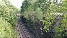 According to the apocryphal story, in the last months of World War II, a Nazi armoured train laden with gold and other treasures left Breslau (now Wrocław), arrived at the station Świebodzice (Freiburg in Schlesien), but did not reach the next station in Wałbrzych (Waldenburg in Schlesien).[3] The train is suspected to have entered into a system of tunnels under castle Książ or the Owl Mountains, which were part of the unfinished top-secret Nazi construction project Project Riese.[4][5] Onboard the train was supposed to be more than 300 t (330 tons) of gold, jewels, weapons, and artistic masterpieces.[6][7]