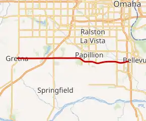 Nebraska Highway 370 (N-370) is an eastwest state highway in Nebraska that is 15.98 miles (25.72 km) in length. It begins at U.S. Route 6 and Nebraska Highway 31 in Gretna, Nebraska and ends at the U.S. Route 75 interchange in Bellevue, Nebraska. It is the main eastwest road in Sarpy County, Nebraska, which serves the southern Omaha suburbs. It is known as the Strategic Air Command Memorial Highway.