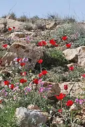 Vegetation in the Negev is sparse, but certain trees and plants thrive there, among them Acacia, Pistacia, Retama, Urginea maritima and Thymelaea.[12] Hyphaene thebaica or doum palm can be found in the Southern Negev. The Evrona Nature Reserve is the most northerly point in the world where this palm can be found.