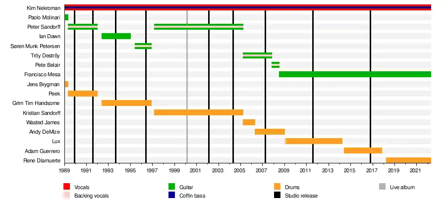 - Kim Nekroman – "coffinbass", lead vocals (1989–present)