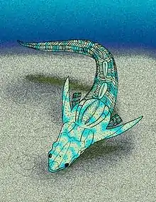 The holotype and only known specimen is a poorly preserved partial, and elongated skull from Emsian-aged strata in Sichuan. The skull may be around 8.5 cm (3.3 in) in length.[1]