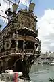 The Neptune is a ship replica of a 17th-century Spanish galleon designed by Naval Architect David Cannell of www.dmcmarine.com. The ship was built in 1985 for Roman Polanski's film Pirates, where she portrayed the Spanish ship of the same name. An accurate replica above the waterline, but sporting a partly steel hull, planked in timber and two main engines with Schottel drive, the Neptune is currently a tourist attraction in the port of Genoa, where its interior can be visited for a 9 euro entry fee.[1] In 2011, she portrayed the Jolly Roger, the ship of Captain Hook, in the TV miniseries Neverland.[2]