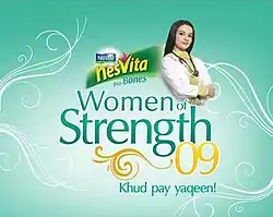 Nestlé Nesvita's Women of Strength initiative aims to provide young urban women with the tools and guidance to create positive, goal-achieving changes in their lives. It tells stories of strength from women who thought they had achieved something extraordinary in life and deserved the title of ‘Woman of Strength’.[1][2][3]