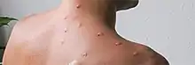 In 1940 Ferdinand Huneke injected the painful shoulder of a woman who also had an osteomyelitis in her leg which at that time (before antibiotics) threatened her with amputation. The shoulder pain improved somewhat but the leg wound became itchy. On injecting the leg wound the shoulder pain vanished immediately – a reaction he called the "secondary phenomenon" (Sekundenphänomen).[1] In segment therapy, a local anaesthetic in the form of skin quads is injected in the area of the corresponding dermatome (called Head zones) of the internal organs or on vegetative ganglia. The reflective effect is to be conveyed via the vegetative nervous system in the affected segment.[3]