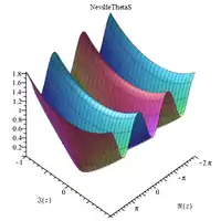 NetvilleThetaC[z,m], NevilleThetaD[z,m], NevilleThetaN[z,m], and NevilleThetaS[z,m] are built-in functions of Mathematica.[6]