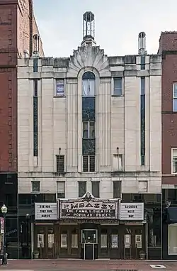 The Embassy Theatre is a performance theater located in the downtown mall of Cumberland, Maryland at 49 Baltimore St. The theater mounts live performances of classic theatre fare such as Kurt Weill's Threepenny Opera[2] and Kander and Ebb's Cabaret, as well as lesser-known work such as "The Mystery of Irma Vep" and "The Lady In Question," original works and local historical plays. Other entertainment presented at the theatre includes movies and musical concerts. Originally opened as a movie theater in 1931, it then became a curtain and drapery store, and finally was remodeled to a live performance theater and allied arts venue. Until December 2014, the theatre was operated as the New Embassy Theatre. Recently remodeled, it now operates as the Embassy Theatre.[3]