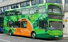 As part of the new marketing, the vehicles were painted in a new green livery with ponies on the side,[6] essentially a green version of Southern Vectis' Island Breezers livery. The Tour's website was launched, and 60,000 leaflets were distributed to over 300 places.[7] An official guide was also launched, given to passengers as they boarded the tour.[7] The buses no longer towed trailers, carrying bicycles on the lower deck instead.[8]