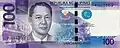 | ₱100 | Violet (mauve) | Manuel A. Roxas, Old Bangko Sentral ng Pilipinas (BSP) building in Intramuros, Manila, Inauguration of the Third Philippine Republic, stronger mauve color than previous banknote | Mayon Volcano in Albay; butanding, Rhincodon typus, whale shark; Bicol textile design | ||||||