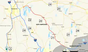 ![]() Map of southern New Hampshire with NH 121 highlighted in red | ||||