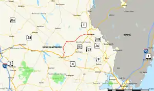 New Hampshire Route 202A (NH 202A) is a 14.639-mile-long (23.559 km) east–west state highway in Strafford and Rockingham counties in southeastern New Hampshire, serving as a northern loop of U.S. Route 202. Its western terminus is in Northwood at US 202 and New Hampshire Route 9, and its eastern terminus is in Rochester at New Hampshire Route 108 and New Hampshire Route 125.