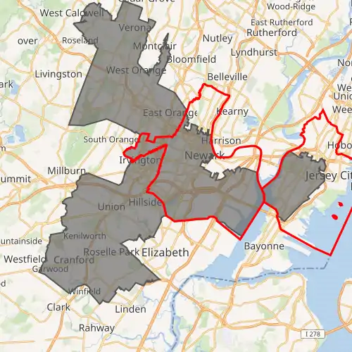 Interactive map of district boundaries, with Newark and Jersey City highlighted in red | |||