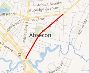 Route 157 is a short state highway in the city of Absecon, New Jersey. The route runs for only 0.91 miles (1.46 km) as North Shore Road from an intersection with U.S. Route 30 (US 30), County Route 585 (CR 585) and Atlantic County Route 601 in the center of Absecon to an intersection with U.S. Route 9 in the northern portion of the city. The route is a former alignment of U.S. Route 9/State Highway Route 4 through Absecon, intersecting with State Highway Route 43 starting in the 1927 state highway renumbering. The route stayed on the alignment until 1930, when U.S. Route 9/Route 4 was bypassed to the west. The former alignment remained unnumbered until the 1953 state highway renumbering, when it was designated as Route 157.