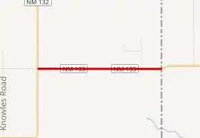 State Road 133 (NM 133) is a very short state highway in the US state of New Mexico. Its total length is approximately 3.60 miles (5.79 km). NM 133's western terminus is at NM 132 North of Hobbs, and the eastern terminus is at Farm to Market Road 1757 (FM 1757) at the Texas–New Mexico state line.