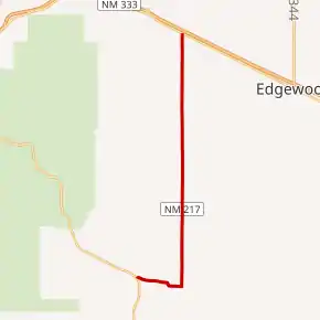 State Road 217 (NM 217) is a state highway in the US state of New Mexico. Its total length is approximately 10.545 miles (16.971 km). NM 217's southern terminus is in the village of Yrisarri, at NM 337 and NM 217's northern terminus is at NM 333 east of Sedillo.[2]