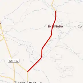 State Road 573 (NM 573) is a 2.22-mile-long (3.57 km) state highway in the US state of New Mexico. NM 573's southern terminus is at NM 162 in Tierra Amarilla, and the northern terminus is a continuation as County Route 331 (CR 331) at the intersection of CR 327 north of Tierra Amarilla. CR 331 continues north to NM 512.