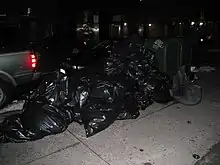 DSNY provides curbside pickup of trash and recycling multiple times per week for every residential building in the city. Trash must be placed in black bags and recycling in clear or blue bags. This leads to complaints about the sidewalk space taken up by trash, especially as large residential buildings produce 'trash bag mountains' daily.[7] Some buildings do place their garbage in special containers.