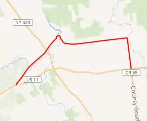 New York State Route 11C (NY 11C) is a short state highway located in St. Lawrence County in the northern part of New York in the United States. NY 11C is a northern alternate route of U.S. Route 11 (US 11) between the towns of Stockholm and Lawrence that serves the hamlets of Winthrop and Brasher Falls. NY 11C briefly overlaps with NY 420 in Winthrop. Although NY 11C follows a mostly east–west routing, it was signed as a north–south route until the 2010s.