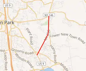 New York State Route 236 (NY 236) is a north–south state highway located within the town of Halfmoon in Saratoga County, New York, in the United States. The highway is little more than a connector linking U.S. Route 9 (US 9) to NY 146 while bypassing the intersection of the two routes to the south and east. The southern terminus of NY 236 is at an intersection with US 9 and the northern terminus is at a junction with NY 146.