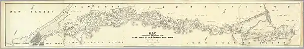 The New York and New Haven Railroad (NY&NH) was a railroad connecting New York City to New Haven, Connecticut, along the shore of Long Island Sound. It opened in 1849, and in 1872 it merged with the Hartford & New Haven Railroad to form the New York, New Haven & Hartford Railroad. The line is now the Metro-North Railroad New Haven Line and part of Amtrak's Northeast Corridor.